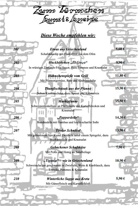 • Speisekarte